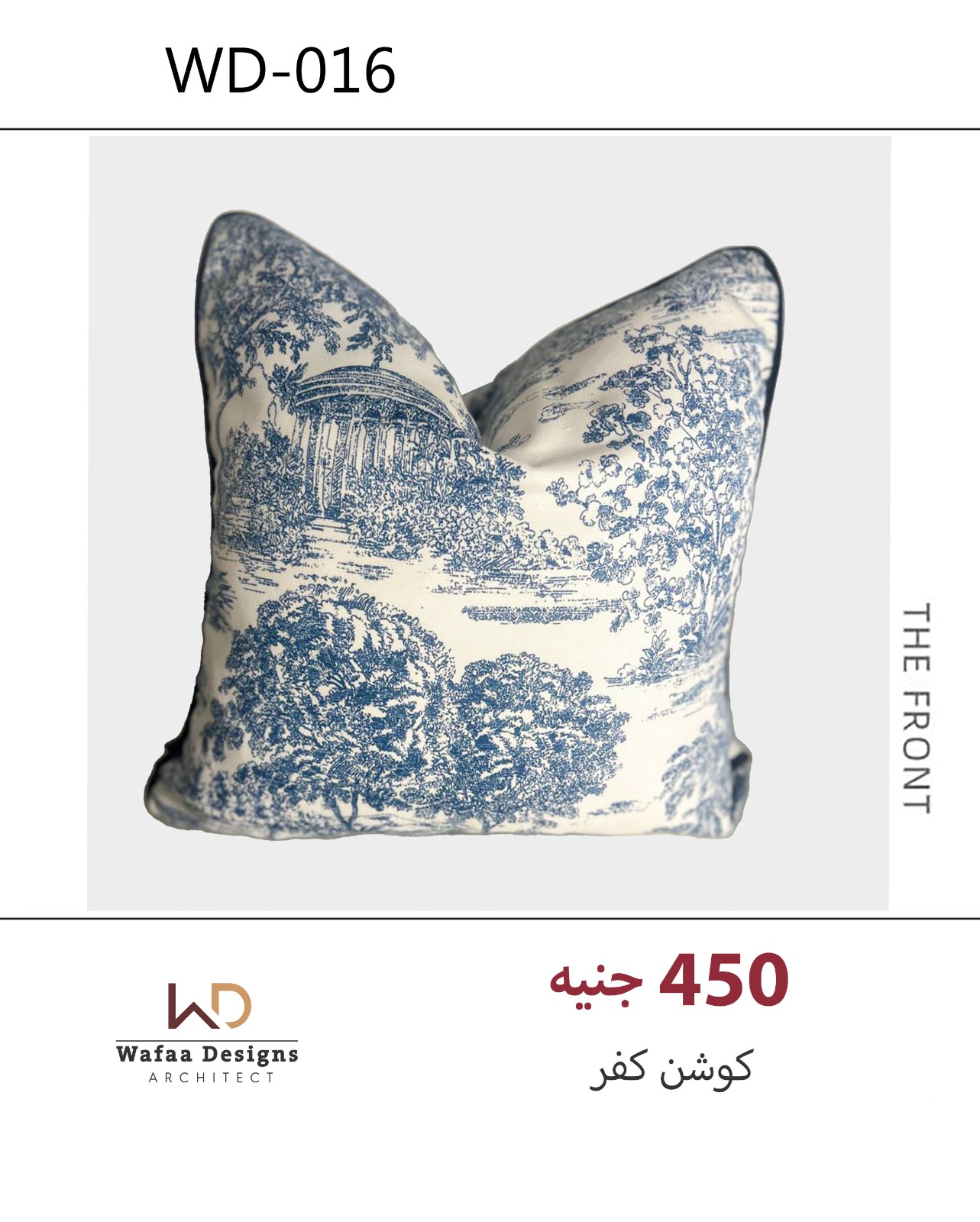 كفر كوشن مقاس 45*45 سم من خامة كتان نقش توال دى جوي فرنسى  عالى الجودة